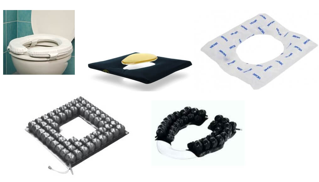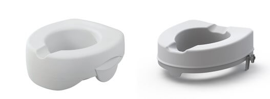 De plus, les rehausseurs de toilette peuvent également faciliter lors du passage assis-debout. Toutefois, beaucoup réduisent l'ouverture de la cuvette et rendent ainsi difficile le passage de la main pour effectuer le soin. Certains modèles sont dotés d'une ouverture à l'avant ou à l'arrière, ont des ouvertures sur le devant ou à l’arrière, ce qui peut représenter une aide.