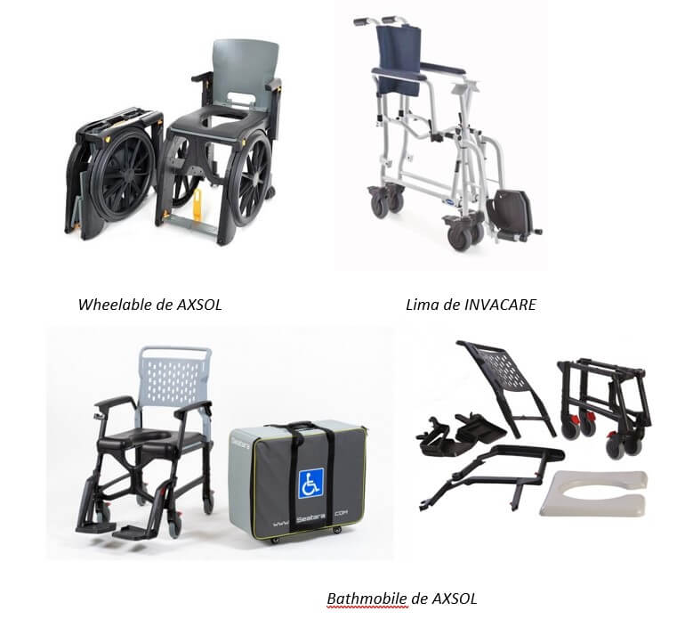 Il existe des aides techniques pliantes, démontables, et par consequent plus facilement transportables.